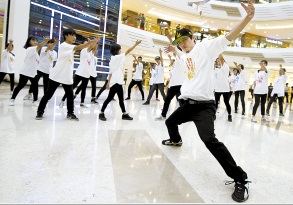 6月24日18点许,30多名身着统一服饰的年轻人出现在泰州市万达广场上,伴随着禁毒歌曲《生命》的节奏翩翩起舞,整齐的舞姿、洋溢的青春气息,以及多彩的LEP视频画面,吸引了越来越多的广场舞大妈加入其中。10多分钟后,音乐声停下,民警和年轻人一起拉起了横幅,高呼“珍爱生命,远离毒品”的活动口号后迅速离开。