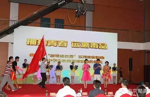 颁奖环节中,现场通过VCR回放了“禁毒进校园”系列宣传活动的精彩瞬间,与会领导分别为活动课件评比以及篮球比赛中获奖的教师、学生代表颁发了奖杯、奖状。同时,获奖的老师及学生加入“南京市禁毒宣传工作队”。