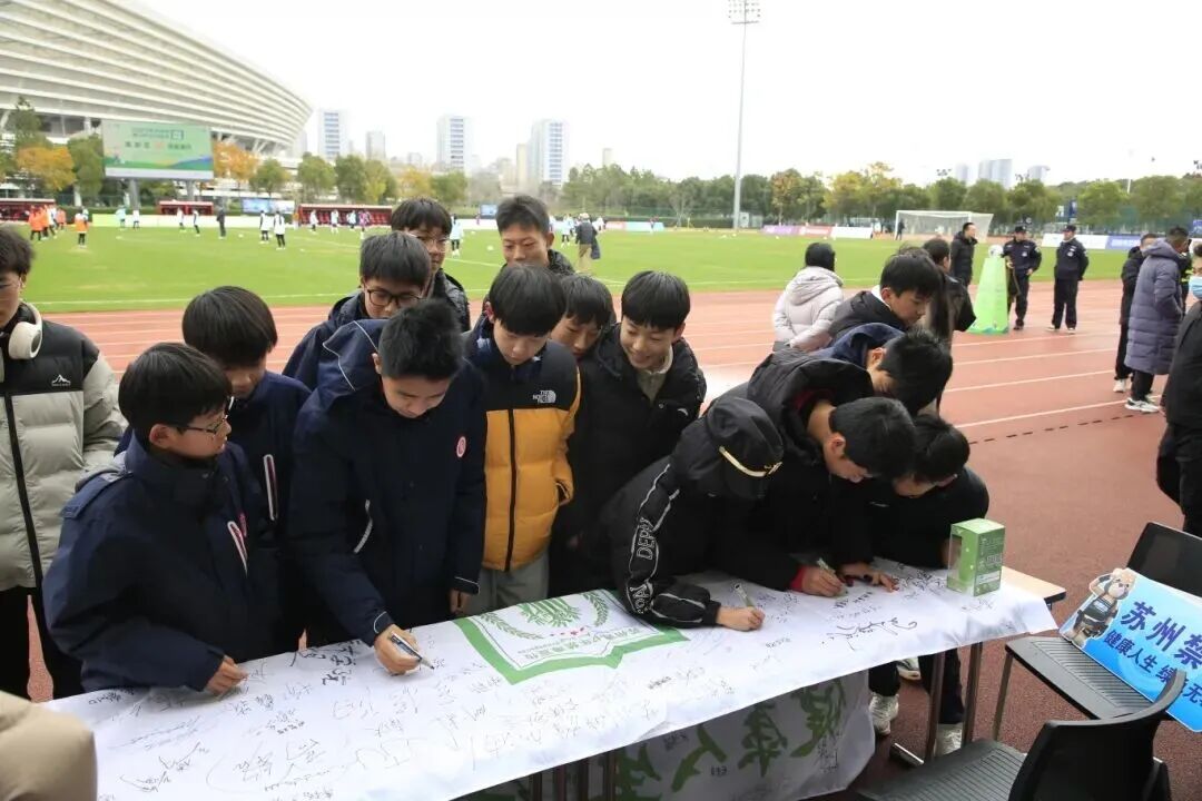 随着终场哨声响起,球赛落幕,但现场热烈的氛围却再度升温。观赛的学生、家长与过往的市民们深受活动感染,纷纷主动拿起现场印有“健康人生、绿色无毒”“我为苏州禁毒打call ”的禁毒宣传标语,齐声为这场禁毒宣传活动打call、点赞。