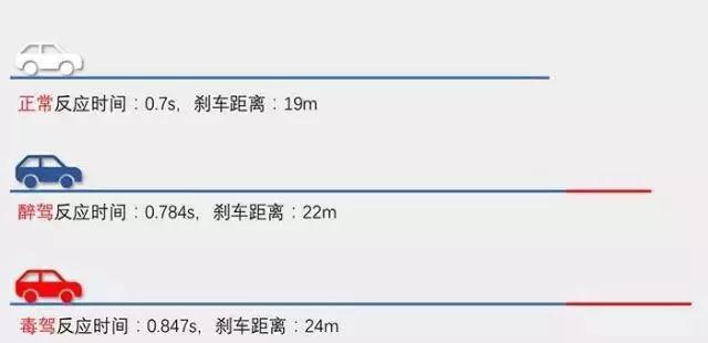 毒品会麻痹人体机能,包括视觉、触觉、判断和操作能力、疲劳程度等等,让驾驶行为变得危险。调查显示,驾驶人酒后驾车比正常驾车的反应时间慢12%,“毒驾”则比正常反应时间慢21%。吸食毒品后,人的判断力会下降甚至完全丧失,一旦开车上路,方向感、距离感就更加错乱,大大增加事故的发生几率。