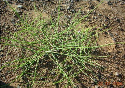 麻黄草,也叫草麻、麻黄,多年生草本植物。其高一般在0.5米左右,伏地而生,一蓬棵粗约0.3米,根0.5-0.7米,粗约2─6厘米,棕红色,枝杆粗约0.1-0.15厘米,土色。针叶直接向上生长,高约40-50厘米左右,粗约1-2毫米。夏日为绿色,秋日变为淡黄色,冬日为枯黄色,来年春夏返为嫩绿色,夹有淡黄色。株最多可达240多针,少的几十余针,当年生一叉枝最少为14针。果结针叶上,果为直径0.1-0.2毫米,初为绿色,冬为黄色。脱落后,来年新针叶长果,果落沙内、戈壁滩内,遇雨而发,生长迅速,喜干旱沙漠、戈壁气候,有较强耐旱适应性。